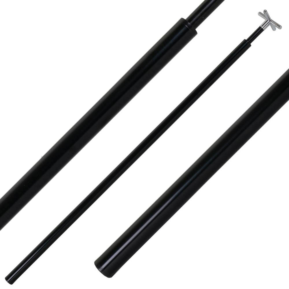 Marca: Dynamic. Modelo: Cross. Producto: Maza de taco telescópica que se puede bloquear en cualquier posición con solo girar el segmento superior y con rosca para apoya taco en cruz. Longitud mínima: 85cm. Longitud máxima: 149.5cm. Color de maza de taco: Negro antracita. Material apoya taco: Aluminio. Color apoya taco: Plata. . El producto se compone por 1 maza de taco telescópico en negro + 1 apoya taco de cruz en color plata