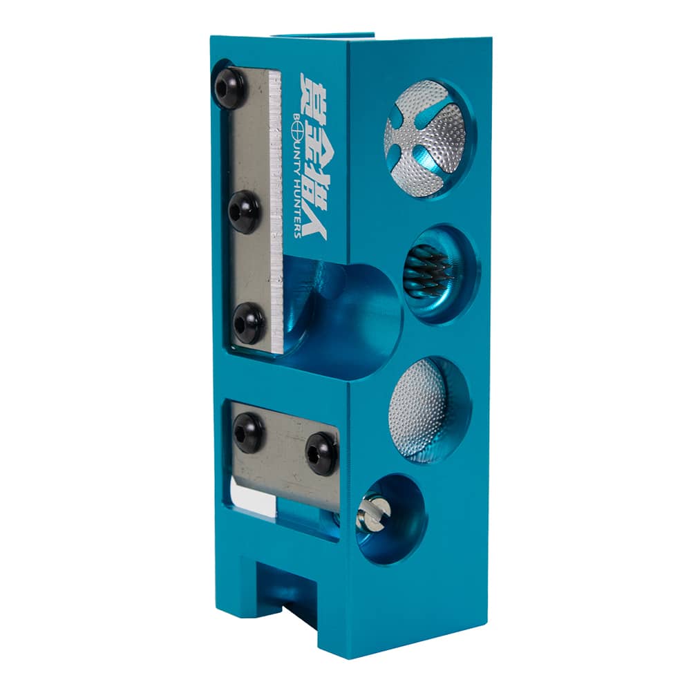 Marca Dybior. Modelo Bounty Hunter. Funciones kit de reparación: desbastar la punta, nivelar la virola, retirar el cuero con precisión, raspar la superficie a la perfección o estampar el cuero.. Medidas: 8cm x 3cm x 2.5cm. . El producto se compone por 1 Herramienta kit de reparación de la marca Dybior