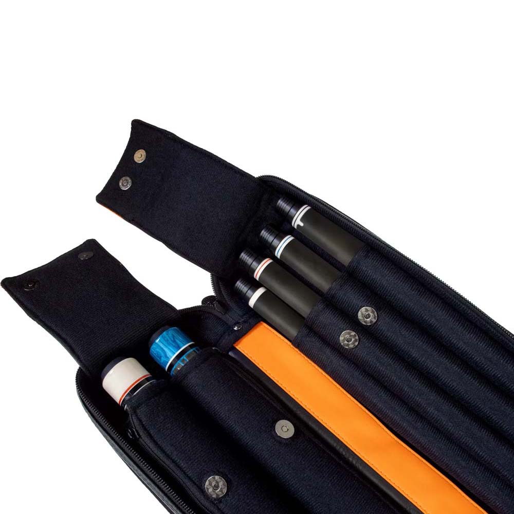 Misaladejuegos Funda taco billar Molinari Retro Flat 86cm 2P-4F Negro Naranja MC-AC-RFB-2B/4S-BK