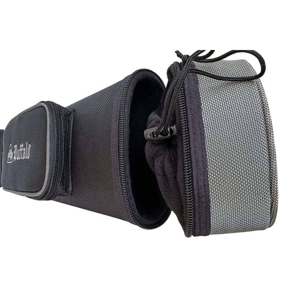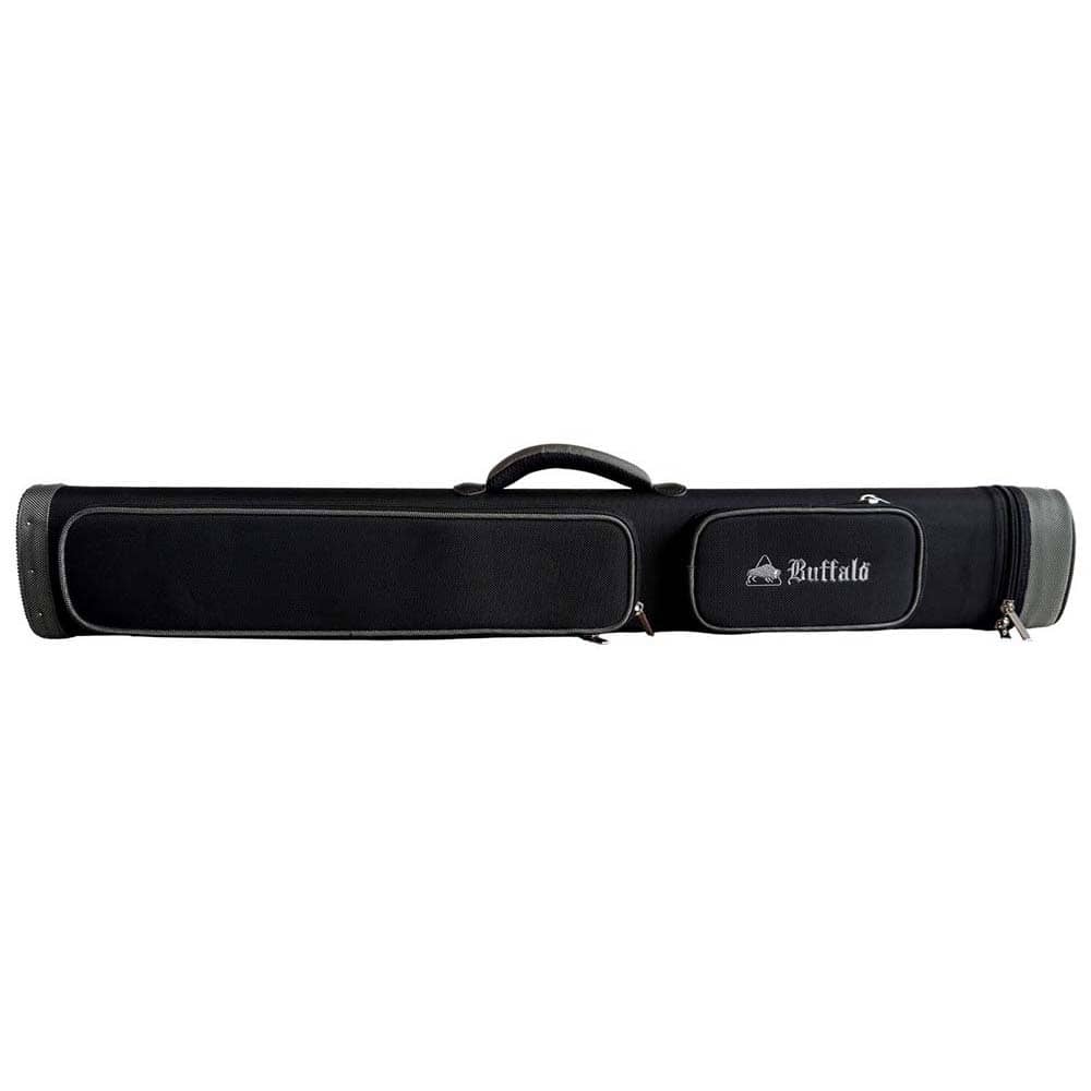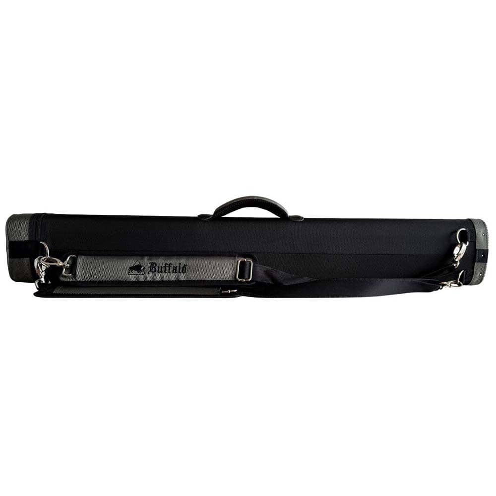 Tubo de taco apto para 2 tacos y 4 flechas. Material: lona con carcasa rígida.. Color: negro con detalles en gris.. Dos correas de hombro para usar como mochila.. Mango cómodo. Base de goma antideslizante para mayor estabilidad junto a la mesa.. Dos compartimentos externos: grande para extensiones, pequeño para accesorios.. Almacenamiento adicional con bolsillo en la tapa para accesorios o tacos más largos. Medida: 88cm. . El producto se compone por 1 funda para tacos de billar Buffalo, no incluye repuestos ni tacos, solo la funda.