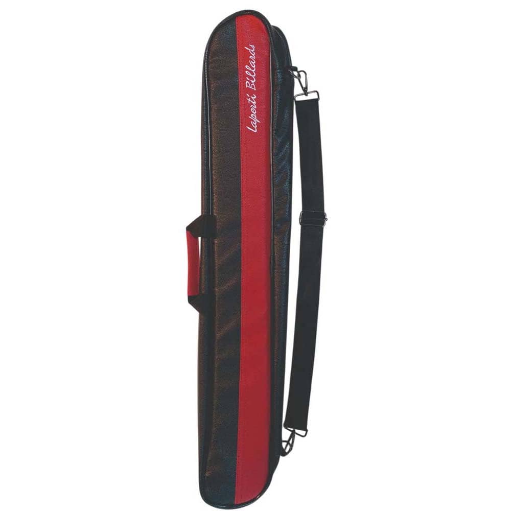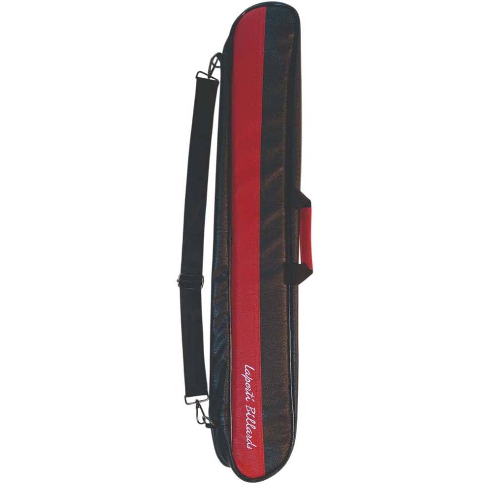 Marca: Laperti. Bolsa de taco para 2 culatas y 2 flechas. Cierre: cremallera. Bandolera. Forrado para mayor protección del taco. Color: negro/rojo. Medida: 84cm. . El producto se compone por 1 funda para tacos de billar Laperti, no incluye repuestos ni tacos, solo la funda.
