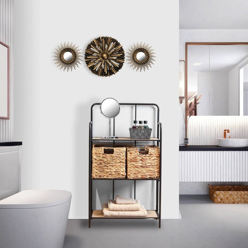 Espejo decorativo de 3 piezas, diseño elegante y moderno, capaz de realzar cualquier rincón de tu hogar. Referencia: 21760020 Largo: 35 cm. Ancho: __ cm. Alto: 35 cm. Diámetro: 35 cm. Material: Plástico Packaging: CAJA BLANCA CON VENTANA Info: 1.1 kg. 1pc – 35cm 2pc – 25cm BarCode: 8420327469311