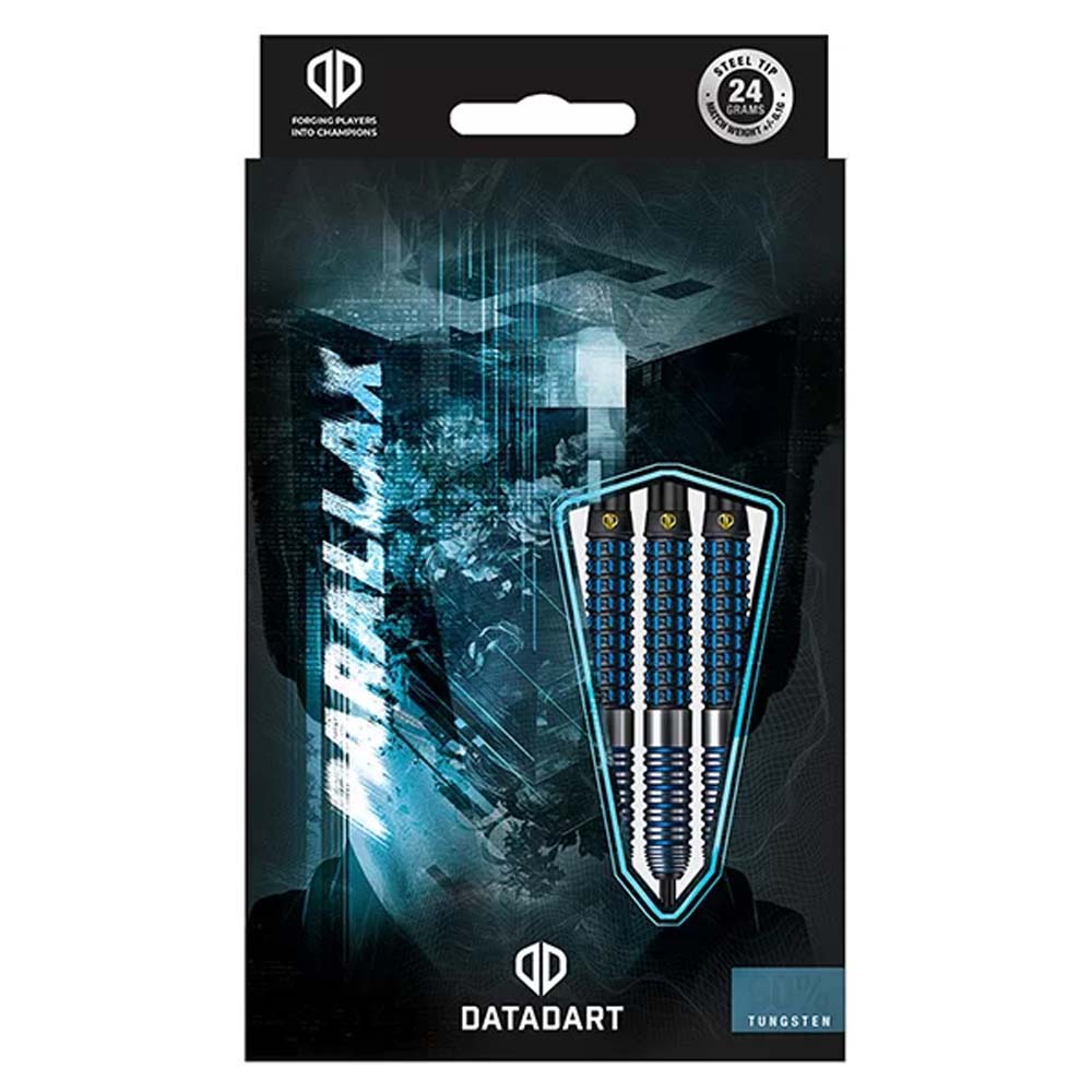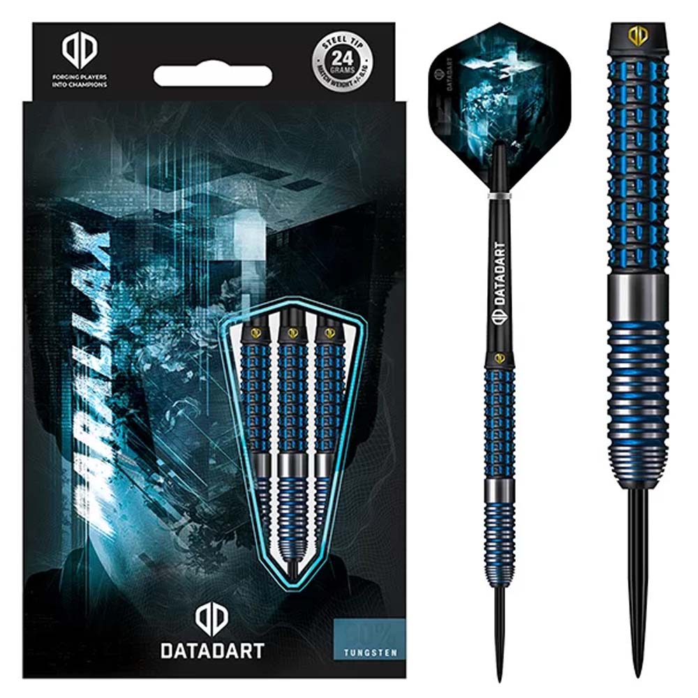 Marca: Datadart. Modelo: Parallax. Material Barril: 95% Tungsteno . Peso barril: 24g . Medidas: Largo 50.0mm Ancho 6.7mm . Punta: Metal ( Steel Tip ). . El juego de dardos se compone por 1 set de 3 cuerpos de dardos Datadart Parallax con punta de metal, 1 set de 3 cañas y 1 set de 3 plumas Datadart.