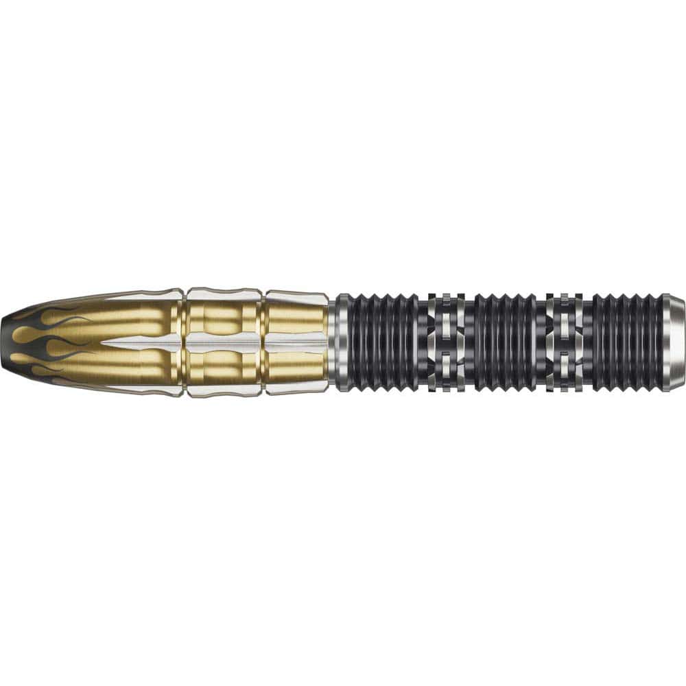 Marca: Target Japan. Modelo: Pyro Gen11. Diseño: Mitsumasa Hoshino. Peso barril: 22 gramos. Material: Tungsteno 90%. Longitud barril: 47.0 mm. Diámetro barril: 7.40 mm. Tipo de punta: Punta de acero con rosca intercambiable Target Swiss Point. Rosca de la caña: 2ba. . El juego de dardos se compone por 1 set de 3 cuerpos Target Japan Pyro Gen11 con punta de acero Target Swiss y 1 set de 3 Plumas con caña integrada Target K-Flex.