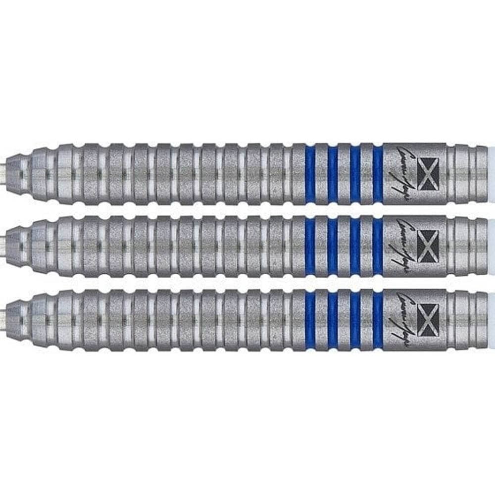Marca: Unicorn Darts. Modelos: Cameron Menzies Phase 2. Peso: 23g. Medida: Largo 50,0 mm Diámetro: 6,5 mm . Material: 90%. . El producto se compone por 1 ser de 3 cuerpos de dardos Cameron Menzies Phase 2, 1 set de 3 plumas y 1 set de 3 cañas.