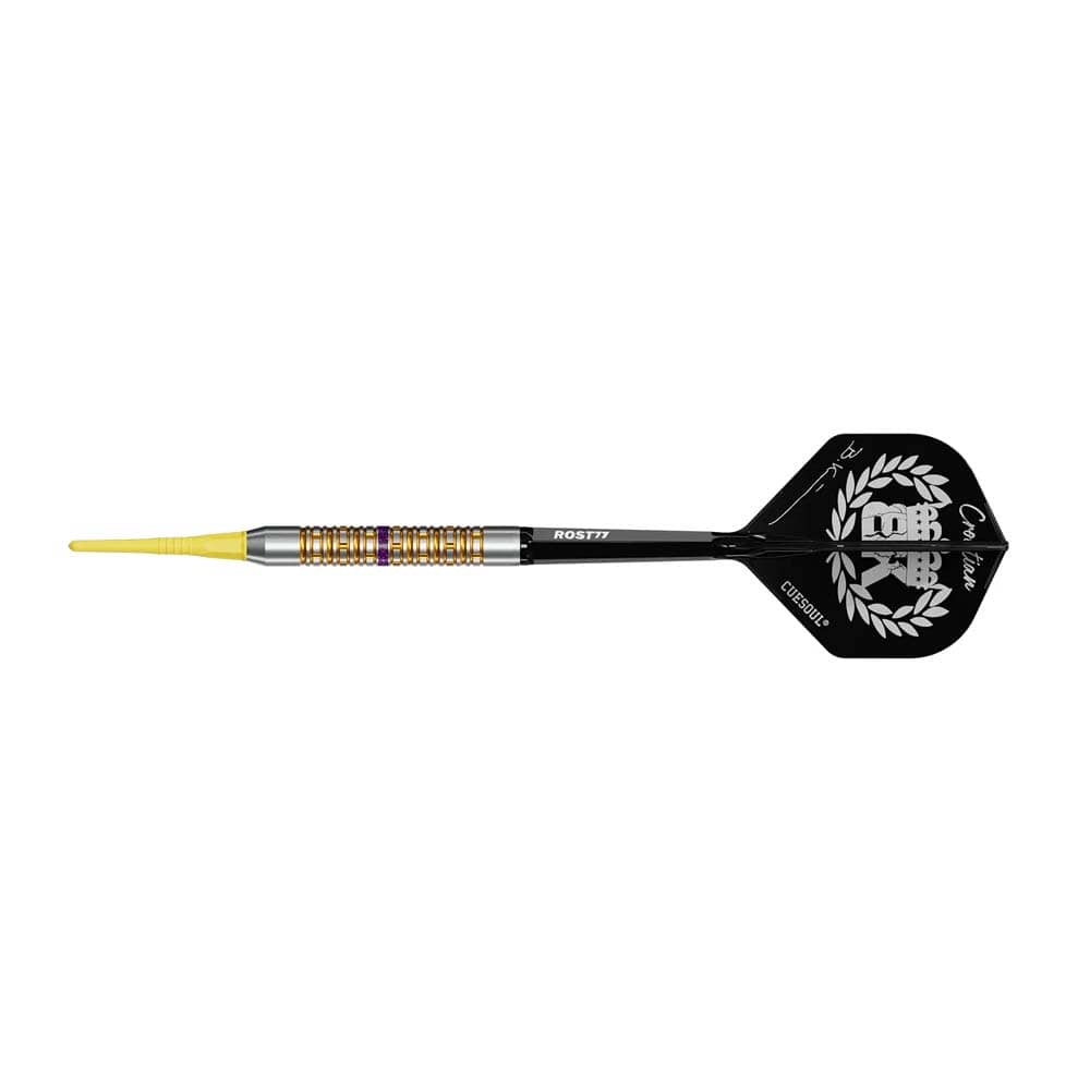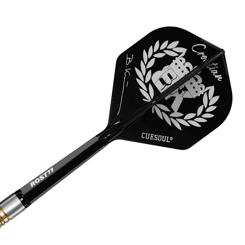 Marca: Cuesoul. Modelo: Boris Krcmar. Versión: Generation One. Punta: Cuesoul OTO rosca 3mm intercambiable. Peso barril: 21g. Longitud barril: 48mm. Diámetro barril: 6.3mm. Material: 95% Tungsteno. . El producto se compone por 1 set de 3 cuerpos de dardos Cuesoul Boris Krcmar, 1 set de 3 plumas con caña integrada Cuesoul Rost 77, 3 puntas de acero, varias puntas de plástico, una llave para cambiar puntas OTO y 1 piedra de afilar puntas.