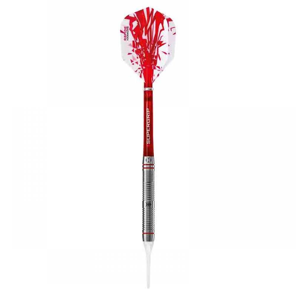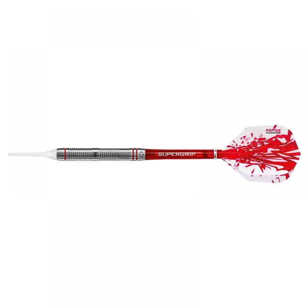 Los dardos Rapide incorporan un nuevo sistema de agarre de gran calidad gracias a sus tres diferentes tipos de grip. El dardos se compone por 1 set 3 cuerpos de dardos Rapide, 1 set 3 cañas de cañas Supergrip, 1 set 3 plumas Harrows Rapide y 3 puntas 2ba Dimple Tamaño del Cuerpo: Longitud:45mm Diametro:6,20mm Pesto total dardo completo: 18 gramos