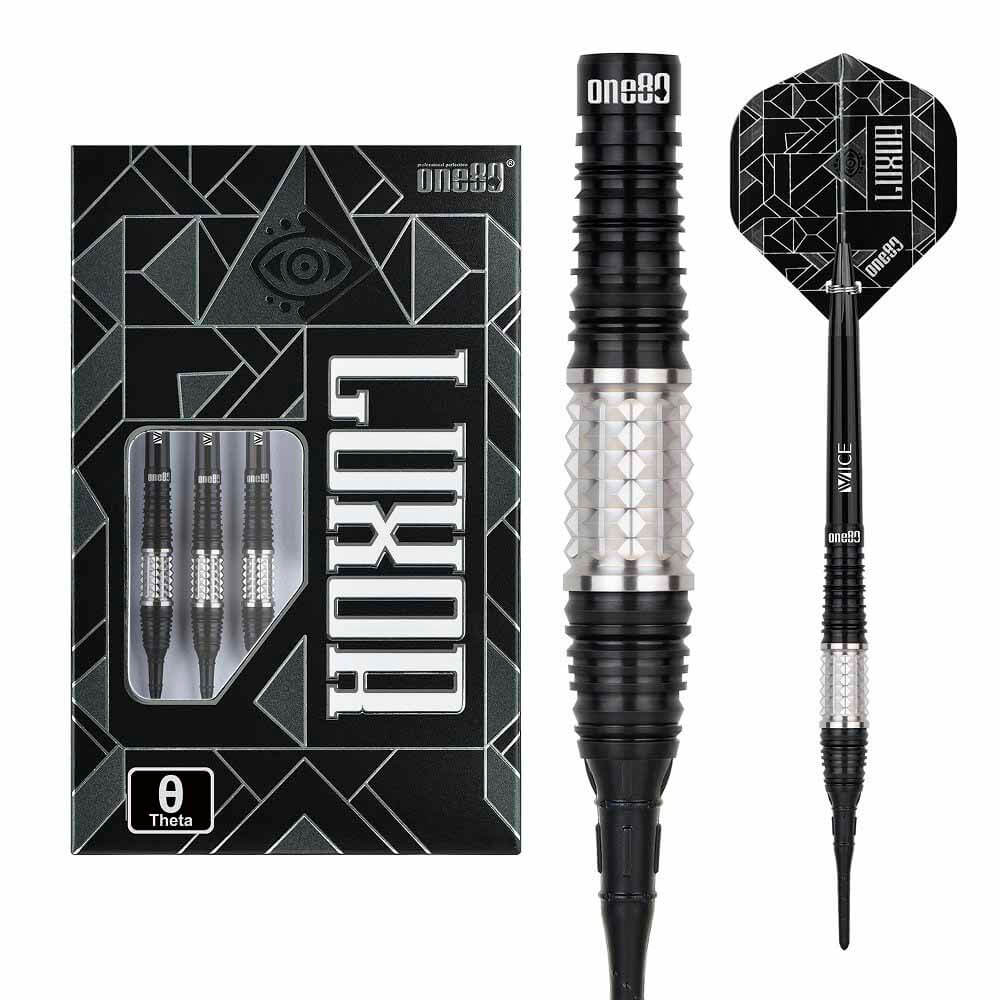 Marca: One 80. Modelo: Theta . Version: II. Largo Barril: max 48.0mm. Diámetro Barril: max 7.4mm. Peso del cuerpo: 20 gramos. Material Barril: 90% Tungsteno. . El juego de dardos Luxor Theta II se compone por 1 set de 3 cuerpos, 1 set de 3 cañas , 1 set de 3 plumas y 1 set de 3 puntas 2ba.
