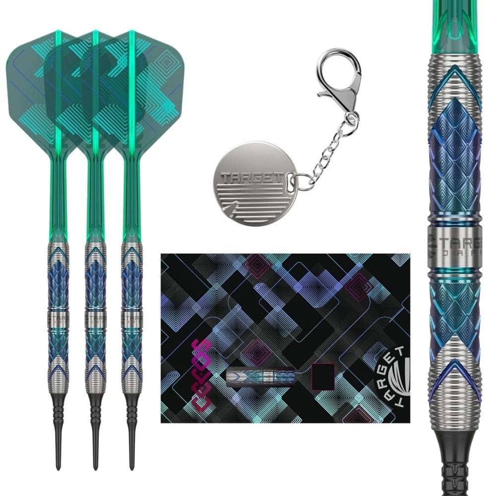 Marca: Target Japan. Modelo: Kaze Series Ceros 03. Peso barril: 19 gramos. Material: Tungsteno 90%. Longitud barril: 46.00mm. Diámetro barril: 6.70mm. Tipo de punta: Punta plástico rosca 2ba. Rosca de la caña: 2BA. . Contenido:. – 1 Set de 3 cuerpos Target Japan Kaze Series Ceros 03. – 1 Set de 3 plumas Target K-FLEX exclusivo de CEROS. – 1 Set de 3 puntas 2ba Target Pixel Tip. – 1 Set de 3 puntas conversion de acero Target Storm. – 1 Expositor acrílico exclusivo: Diseño dinámico inspirado en las olas.. – 1 Llavero con cadena Target para llevar tus dardos siempre a mano.. – 1 SWISS KEY original: Una herramienta dedicada que te permite intercambiar puntas Target Swiss en tan solo unos segundos.