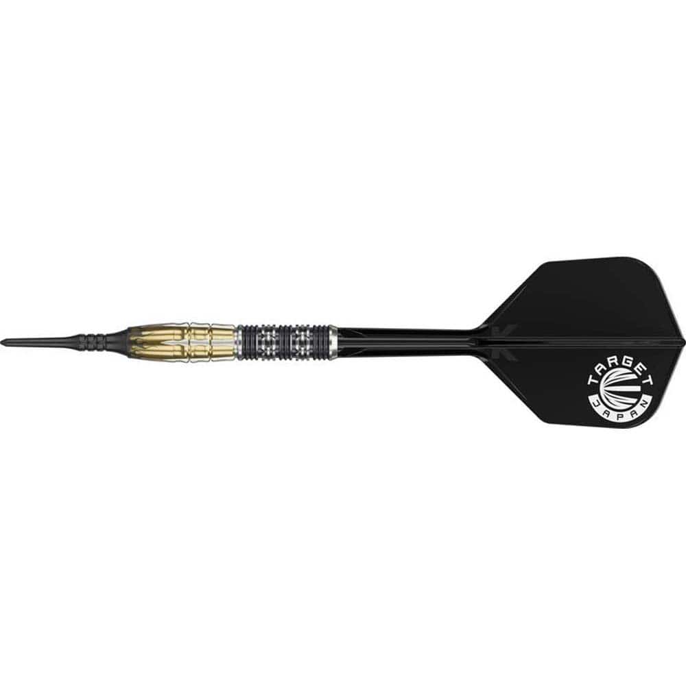 Marca: Target Japan. Modelo: Pyro Gen11. Diseño: Mitsumasa Hoshino. Peso barril: 17 gramos. Material: Tungsteno 90%. Longitud barril: 39.0 mm. Diámetro barril: 7.60 mm. Tipo de punta: Plástico rosca 2ba 4mm (Soft Tip). Rosca de la caña: 2ba. . El juego de dardos se compone por 1 set de 3 cuerpos Target Japan Pyro Gen11, 1 set de 3 Plumas con caña integrada Target K-Flex y 1 set de 3 puntas de plástico Target Pixel Tip 2ba.