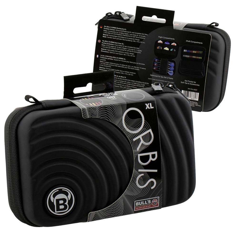 Dardera Bulls Darts De Orbis XL Black. Medida 19cm x 11cm x 5cm. El producto se compone por 1 funda de dardos Orbis, no incluye dardos ni accesorios.