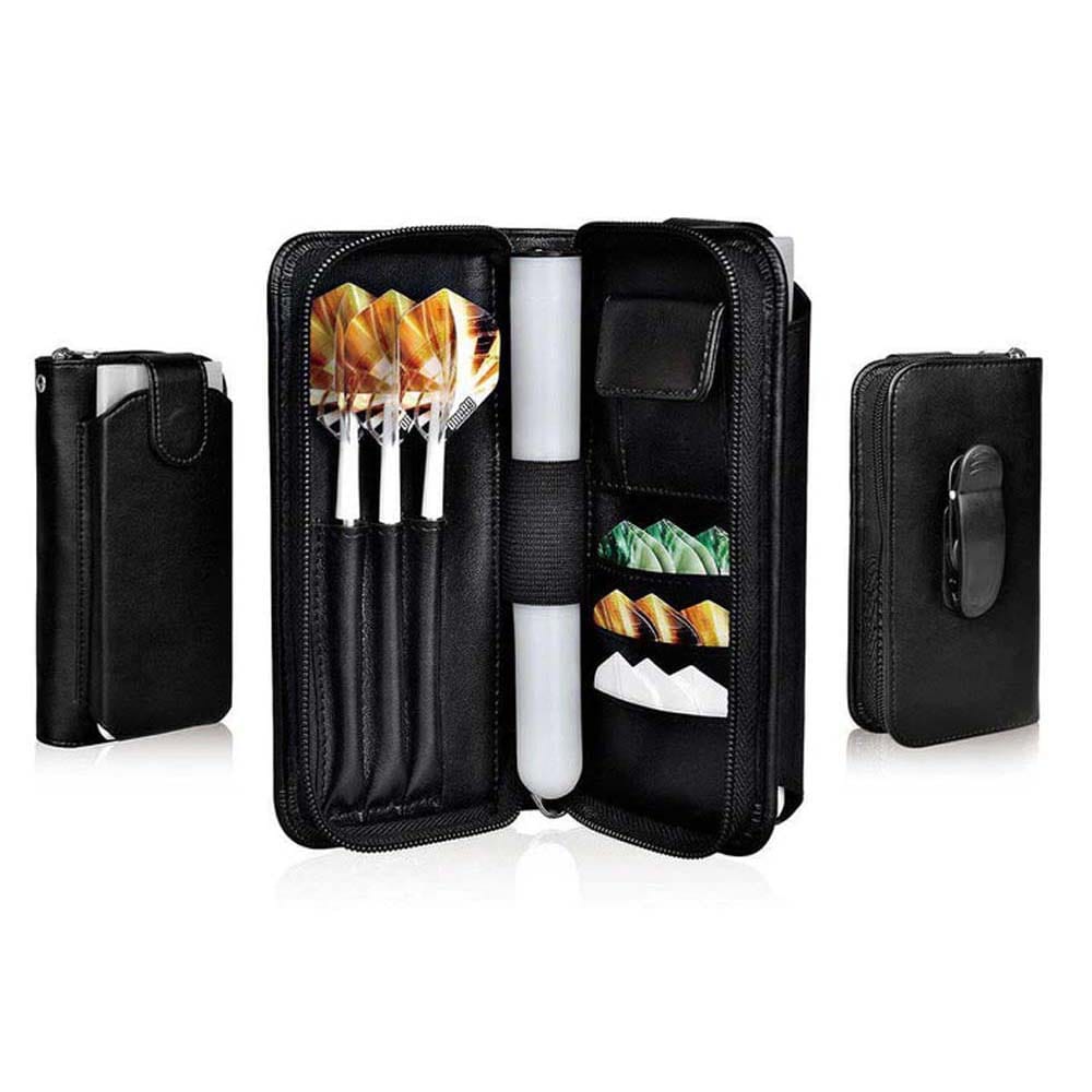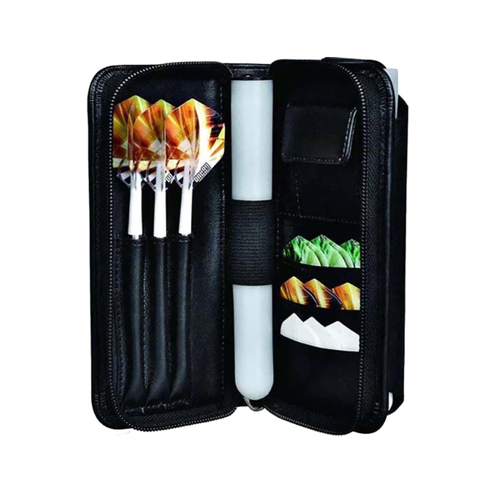 Marca: One 80. Modelo: Holdall Wallet. Color: Negro. Medida: 18cm X 9cm X 5cm. Capacidad: 2 juegos de dardos y bolsillos para repuestos. . El producto se compone por una funda de dardos One80 Holdall Wallet, no incluye dardos ni accesorios, solo es la funda.