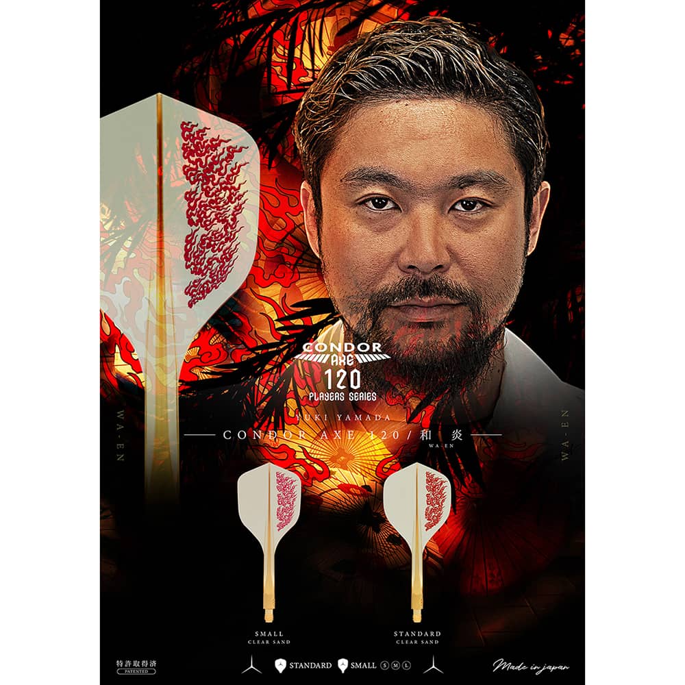 Formato: Shape. Modelo: 120. Diseño: Wa En Yuki Yamada. Color: Clear Sand – Arena Transparente. Talla: S. Longitud: S 18.0 mm. . El producto se compone por 1 set de 3 plumas de la marca de dardos Condor Axe modelo 120