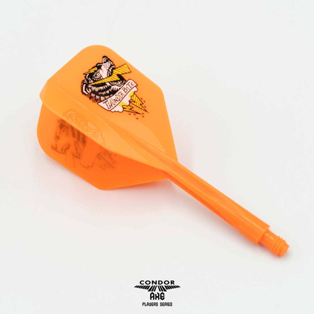 Formato: Shape. Modelo: Thunder Bite. Color: Naranja. Talla: M. Longitud: M 27.5mm. . El producto se compone por 1 set de 3 plumas de la marca de dardos Condor Axe modelo 120