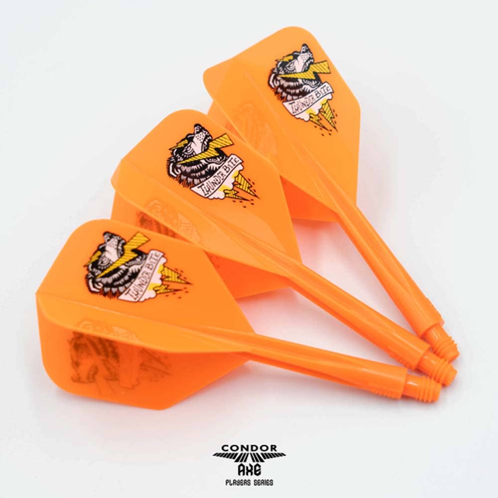 Formato: Shape. Modelo: Thunder Bite. Color: Naranja. Talla: XL. Longitud: XL 37.5mm. . El producto se compone por 1 set de 3 plumas de la marca de dardos Condor Axe modelo 120