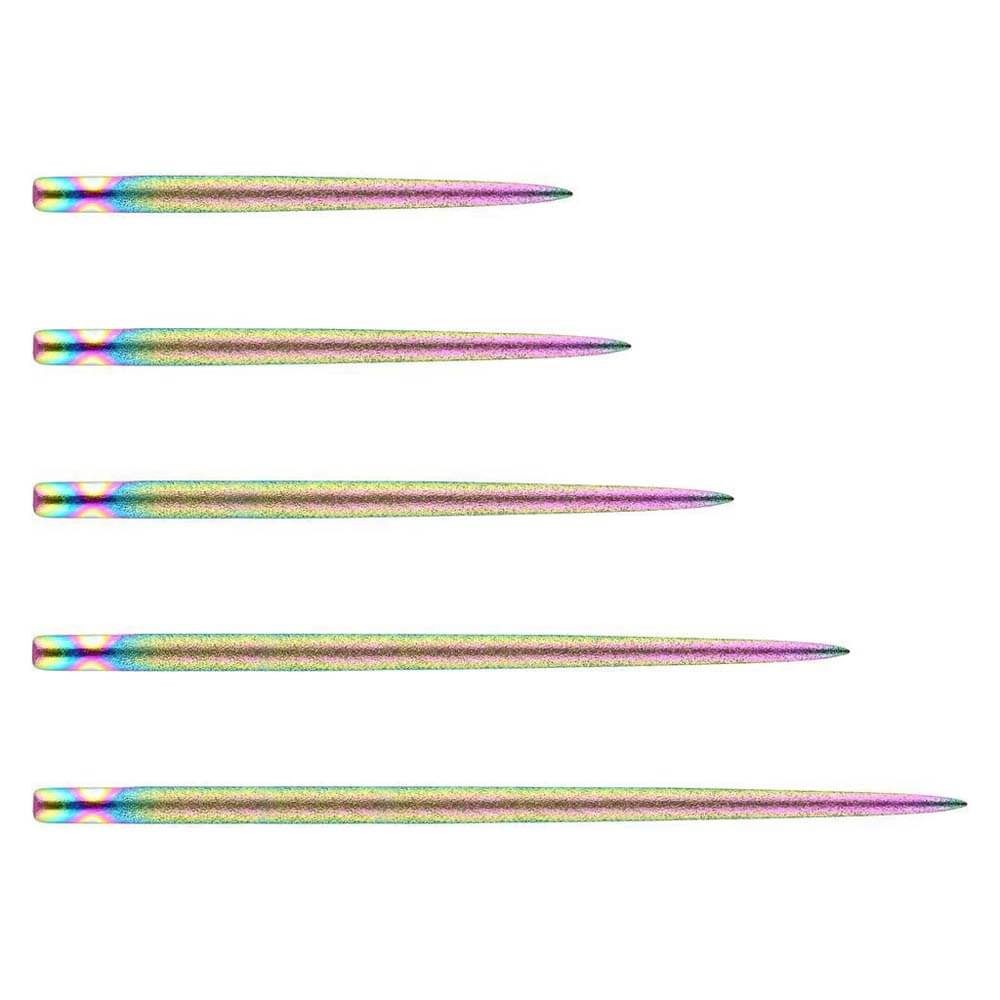 Marca: One80. Gama: Long Taper Sand Rainbow . Color: Rainbow . Medida: 36mm. . El producto se compone por 1 set de 3 puntas de la marca One80 Long Taper Sand Rainbow , no incluye dardos ni accesorios solo son las 3 puntas.