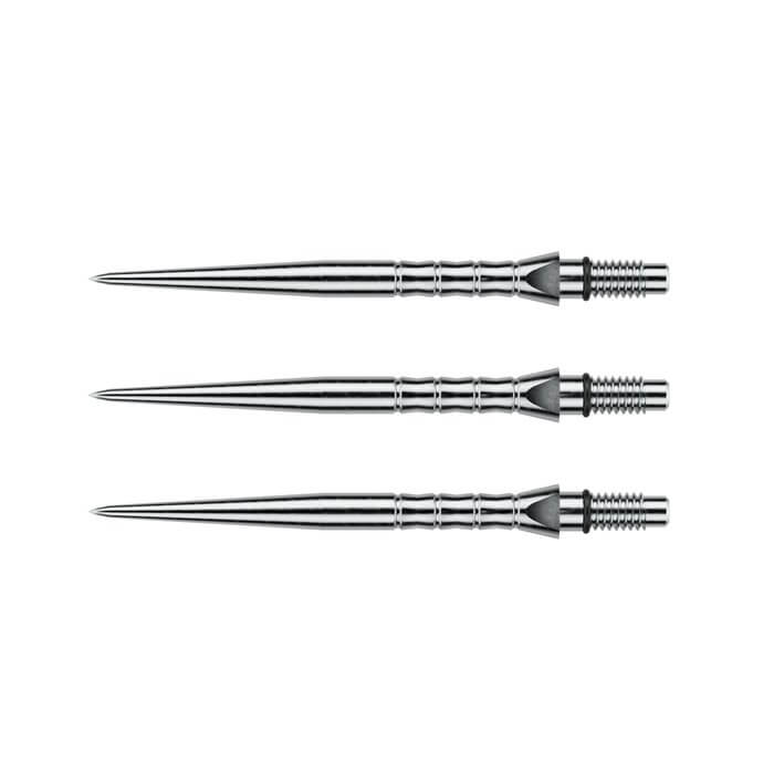 Punta Winmau Switch Point Wave Silver 26mm. . Marca: Winmau. Modelo: Switch Point Wave. Longitud: 26mm. Color: Plata. Cantidad: 3 Unidades. . El producto se compone por 1 set de 3 Puntas Winmau Switch Point Wave Silver 26mm