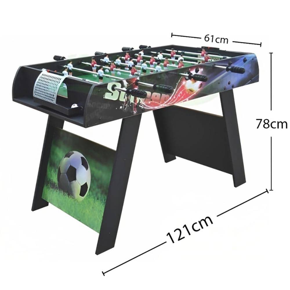 Futbolín infantil de diseño moderno para uso doméstico. Cuenta con barras telescópicas y un total de 22 jugadores. Referencia: 720011 EAN: 8413282704023 Medidas: 121 x 61 x 78 cm Varillas porta-jugadores telescopicas para mayor seguridad Mangos de plástico Diseño moderno 22 jugadores Incluye: 2 bolas Recomendado a partir de 14 años —– Transporte: La mercancía recibida debe ser revisada por el cliente en el mismo momento en que la agencia de transporte realiza la entrega, si a simple vista se observa que tiene golpe, no aceptar la entrega y que el transportista se la lleve de nuevo. Si se revisa y el embalaje está en perfecto estado anotar en el albarán siempre “bulto golpeado” antes de firmar, esto se hace para estar protegido cara el seguro del transporte ante cualquier daño que sufra el pedido en el transporte y no se pueda observar a simple vista. Ante cualquier percance comunicarlo en un plazo máximo de 24 horas al correo electrónico manuelgil@manuelgil.com o al teléfono 96 366 10 98 de 10:00h a 13:30h. La entrega se realiza puerta a puerta. Las agencias de transporte no ofrecen la posibilidad de subir a ningún piso o habitación. *** No se podrán admitirán reclamaciones si no ha hecho constar nada en el albarán de entrega del transportista***—– —– Plazo de entrega: Plazo de entrega de 4 o 7 días laborables (en fechas como Reyes, Papa Noel, Black Friday y rebajas el plazo puedes verse alterado incluso a 10 días)—–