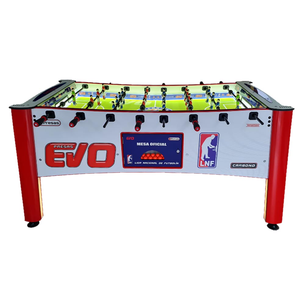 FUTBOLÍN EVO HOBBY (especial para casa) El futbolín PATENTADO elegido por todos. Diseño innovador con materiales y acabados de alta calidad. Iluminación led en terreno de juego (retroiluminado), patas y cabezales. Barras de carbono. Nuevo jugador de pierna separada. Técnica y rapidez. Nivelación mediante patas regulables en altura PATENTADO: Mesa y todos sus componentes Medidas Máquina 2200*1000/1350*1160 mm. (largo*ancho mueble/con barras*alto) Medidas máquina embalada 1750*1050*1040 mm. (largo*ancho*alto) Peso 150 kg. Opcional: Pantalla táctil de partida y goles 13.3 pulgadas Marcador digital de partidas y goles.—– Transporte: La mercancía recibida debe ser revisada por el cliente en el mismo momento en que la agencia de transporte realiza la entrega, si a simple vista se observa que tiene golpe, no aceptar la entrega y que el transportista se la lleve de nuevo. Si se revisa y el embalaje está en perfecto estado anotar en el albarán siempre “bulto golpeado” antes de firmar, esto se hace para estar protegido cara el seguro del transporte ante cualquier daño que sufra el pedido en el transporte y no se pueda observar a simple vista. Ante cualquier percance comunicarlo en un plazo máximo de 24 horas al correo electrónico manuelgil@manuelgil.com o al teléfono 96 366 10 98 de 10:00h a 13:30h. La entrega se realiza puerta a puerta. Las agencias de transporte no ofrecen la posibilidad de subir a ningún piso o habitación. *** No se podrán admitirán reclamaciones si no ha hecho constar nada en el albarán de entrega del transportista***—–