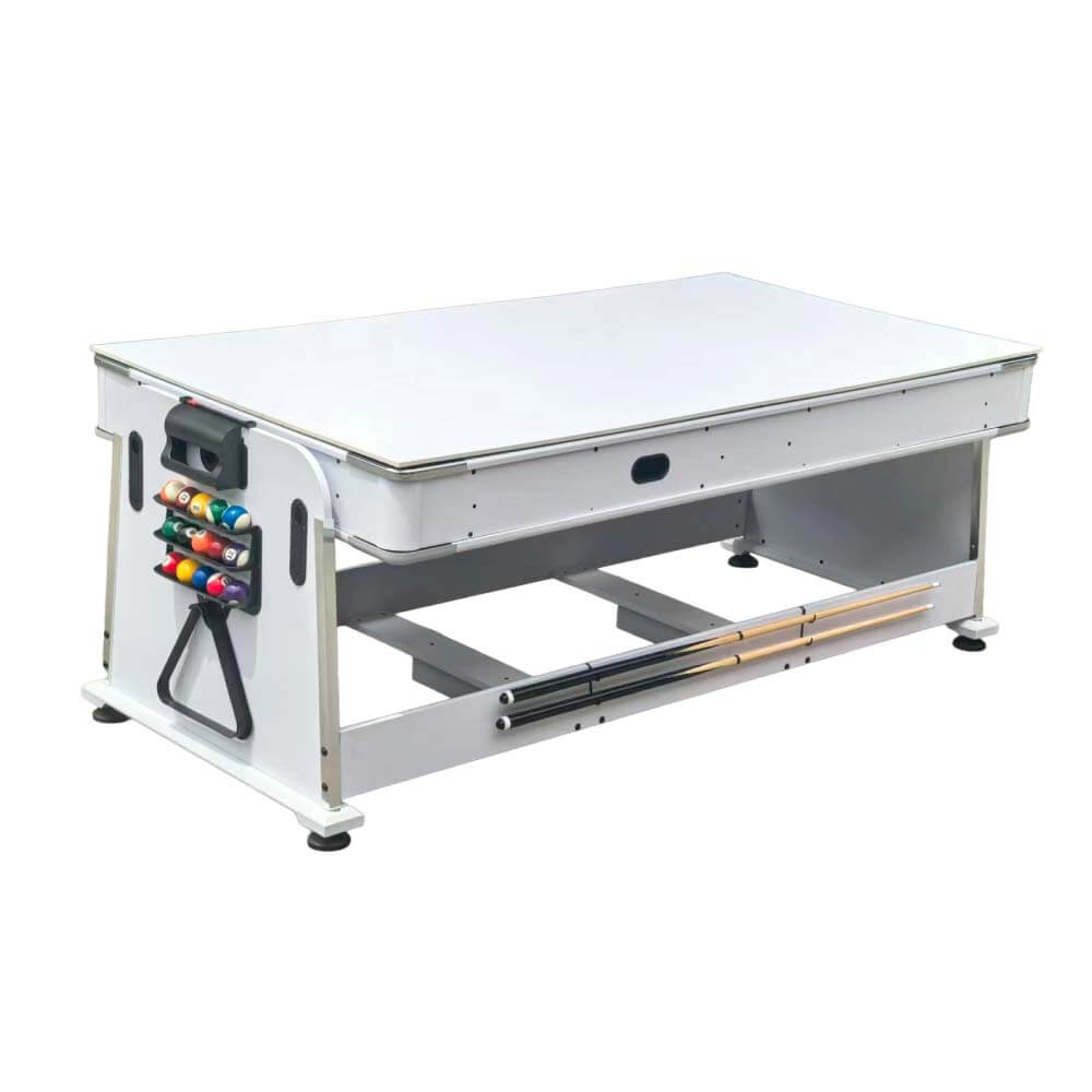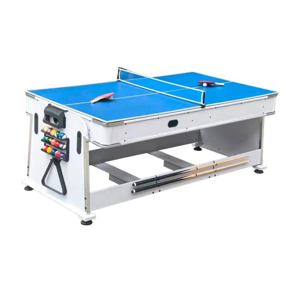MULTIJUEGO 4 FUNCIONES EN 1 Disfruta de tus juegos favoritos como el Billlar, el Ping Pong y el Air Hockey convertibles en una funcional mesa de comedor. Un producto destinado a brindarte grandes ratos de ocio, pensando también en la funcionalidad y adaptándose a tu espacio. Características principales del nuevo multijuego 4 en 1 Dimensiones mesa: 203.5 x 112 x 81 cm Dimensiones del campo juego del billar: 179.5 x 88 cm Dimensiones del campo de juego del air hockey: 188.5 x 97 cm Dimensiones mesa: 203.5 x 112 x 81 cm Dimensiones del campo juego del billar: 179.5 x 88 cm Dimensiones del campo de juego del air hockey: 188.5 x 97 cm Dimensiones del campo de juego del ping pong y mesa comedor: 203.5 x 112 cm Dimensiones de la caja: 220 × 130 × 23 cm Peso de la mesa: 135 Kg Peso con embalaje: 149 Kg Diseñado para uso doméstico? Fabricada en MDF con PVC blanco laminado El Air Hockey cuenta con motor Patas cuadradas de 10×10 para una mejor estabilidad. Paño color verde Incorpora niveladores de patas. Edad recomendada a partir + 14 años Fácil montaje Material: MDF con PVC blanco laminado El Air Hockey cuenta con motor Fabricada en MDF Patas cuadradas de 10×10 para una mejor estabilidad. Se deja a pie de calle. Además, la mesa incluye: Dos palas de tenis de mesa, una red, dos bolas de tenis de mesa, dos tacos de billar, dos tizas, triángulo, cepillo y juego de bolas de billar. Este producto incluye transporte pero no incluye ni subirlo ni montarla, te lo dejaran en la parte mas accesible de la vivienda, normalmente será el patio si es una vivienda comunitaria o si es una casa o chalet en la entrada, si quieres la opción de subirlo o montarlo las encontraras en el pie de esta pagina para poder añadirlos a tu compra.—– Transporte: La mercancía recibida debe ser revisada por el cliente en el mismo momento en que la agencia de transporte realiza la entrega, si a simple vista se observa que tiene golpe, no aceptar la entrega y que el transportista se la lleve de nuevo. Si se revisa y el embalaje está en perfecto estado anotar en el albarán siempre “bulto golpeado” antes de firmar, esto se hace para estar protegido cara el seguro del transporte ante cualquier daño que sufra el pedido en el transporte y no se pueda observar a simple vista. Ante cualquier percance comunicarlo en un plazo máximo de 24 horas al correo electrónico manuelgil@manuelgil.com o al teléfono 96 366 10 98 de 10:00h a 13:30h. La entrega se realiza puerta a puerta. Las agencias de transporte no ofrecen la posibilidad de subir a ningún piso o habitación. *** No se podrán admitirán reclamaciones si no ha hecho constar nada en el albarán de entrega del transportista***—– —– Plazo de entrega: Plazo de entrega de 7 a 20 días laborables.—–