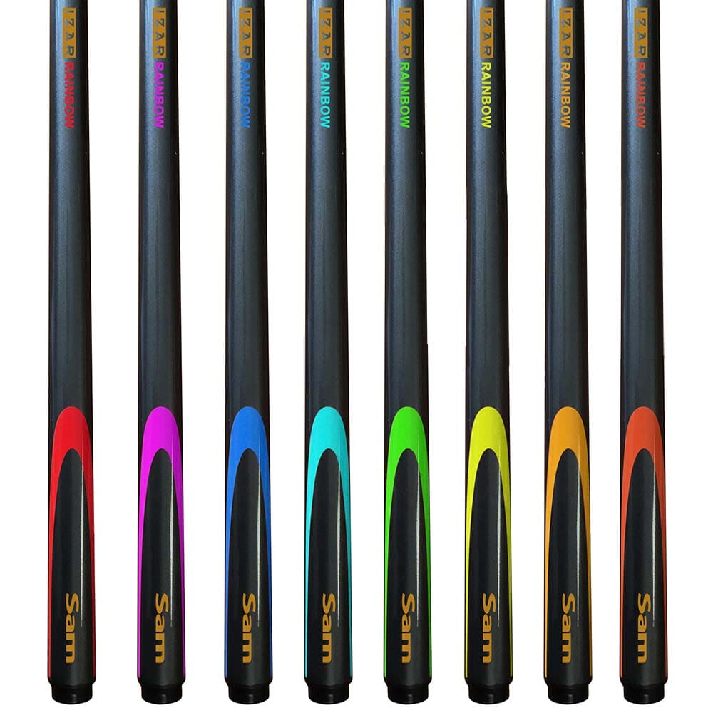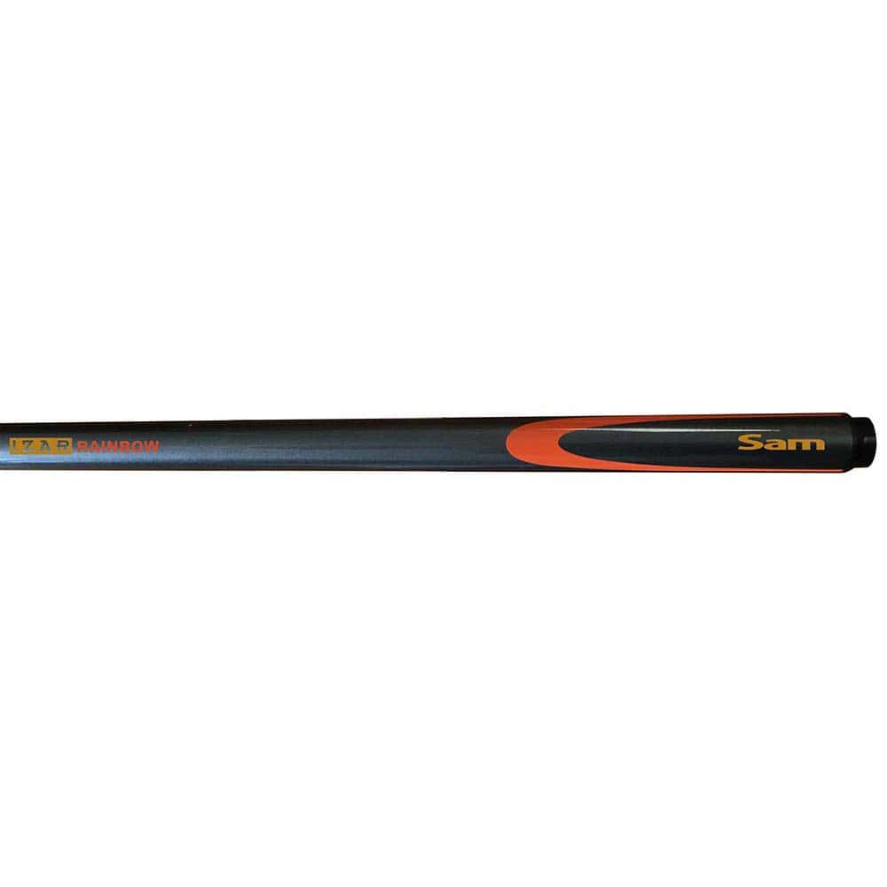 Modalidad: Pool. Modelo: Izar Rainbow. Material: Fibra. Tipo de punta: Soleta pegada de 13mm. Longitud: 1.45m. Configuración: Taco de 1 Pieza. Color: Naranja Oscuro. . El producto se compone por 1 taco de billar fabricado en fibra modelo Izar Rainbow.