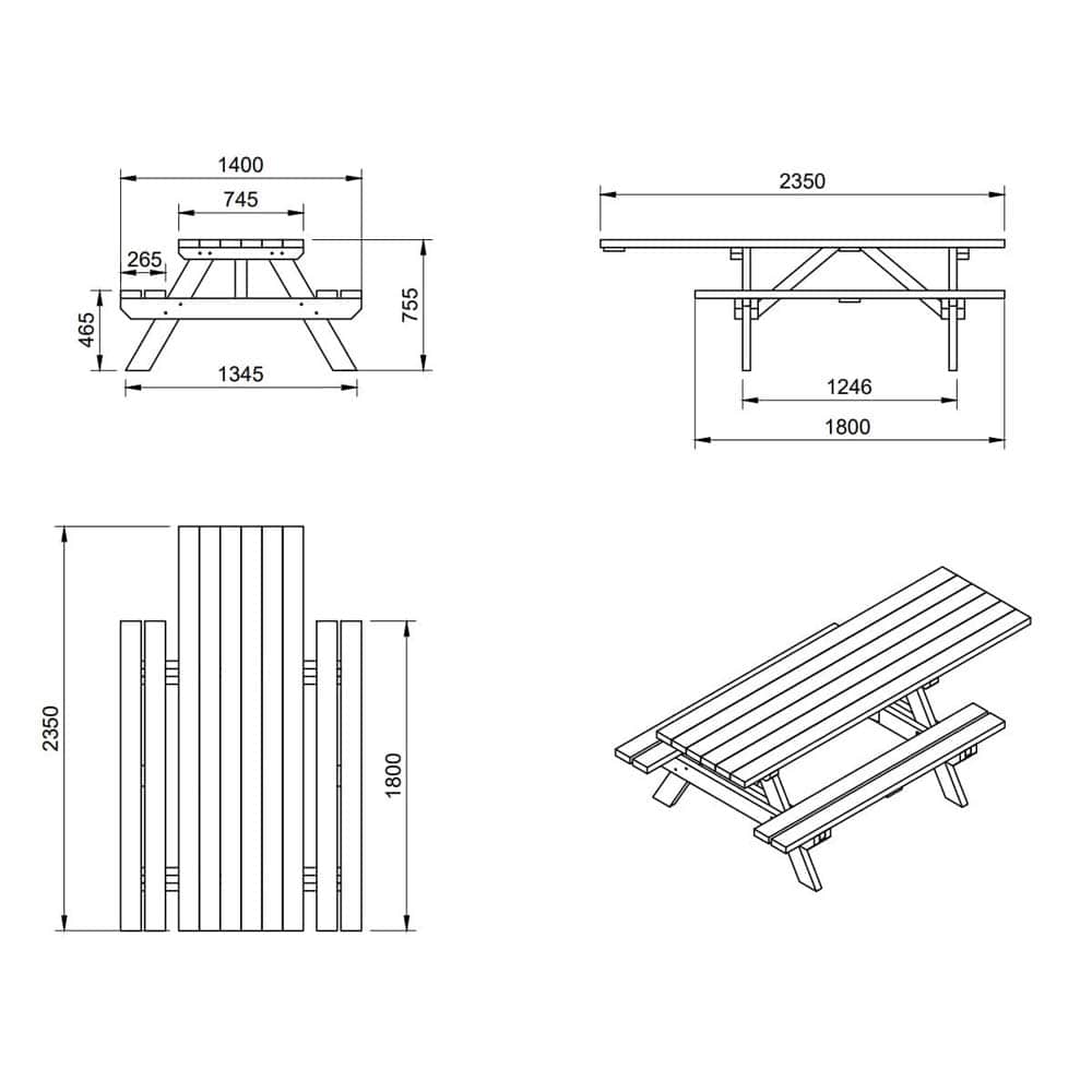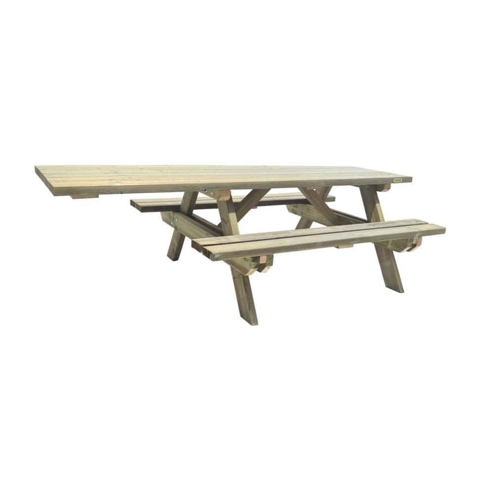 La mesa de picnic adaptada para ir en silla de ruedas MASGAMES LYON es una mesa que ha sido diseñada para estar al aire libre. La madera está tratada en autoclave nivel IV lo que le permite que se moje con la lluvia, el riego, le toque el sol directamente o la puedan dejar en invierno fuera. Las mesas que no indican qué nivel de autoclave tienen, generalmente es de nivel III y no pueden estar completamente al exterior, son para poner debajo de un porche. No es el caso de la mesa de picnic de madera MASGAMES LYON que es para exterior. Según el artículo 26.2 de la disposición 13488 del BOE 187 del 6 de agosto de 2021 cuando se instalen mesas de picnic, deberá haber un mínima de una unidad por cada agrupación y, en todo caso, una unidad por cada cinco mesas de picnic de una mesa adaptada a sillas de ruedas. Por lo que si están pensando en comprar varias mesas de picnic para instalar en un lugar público, una debería ser adaptada a sillas de ruedas como lo es la mesa de picnic MASGAMES LYON. La mesa de picnic adaptada MASGAMES LYON es más larga que el modelo LYON por lo que una persona que se quiera acomodar en silla de ruedas se puede poner en el extremo de la mesa y disfrutar de la mesa sin problemas. La mesa de picnic incluye los anclajes para fijarla al suelo ya que en este modelo es obligatorio ponerlos. Las mesas de picnic de madera MASGAMES LYON tienen unas maderas muy gruesas (120×45 mm) y un diseño muy pensado para resistir mucho peso. Cumple la normativa EN1176 por lo que puede instalarse en parques públicos de ayuntamientos, áreas de servicio, escuelas, residencias, hoteles, campings, comunidades de propietarios o en jardines particulares de clientes muy exigentes. El montaje de la mesa de picnic MASGAMES LYON es sencillo ya que vienen piezas premontadas y los agujeros hechos. Además de unas instrucciones claras en diferentes lenguas, entre ellas el castellano, para que no hayan dudas en el montaje, hay un vídeo donde se muestra como de fácil y rápido es el montaje. La mesa de picnic MASGAMES LYON tiene las siguientes medidas (+/- 2% de variación por la dilatación y contracción de la madera): Largo: 235 cm Ancho: 134,5 cm Alto de la mesa: 75,5 cm Alto del banco: 46,5 cm Peso: 145 kg A diferencia de las otras mesas de picnic, la mesa de picnic adaptada MASGAMES LYON debe anclarse al suelo. En el precio incluye el set de 4 anclajes para fijarla en suelos de arena o césped. —– Transporte: **** La entrega se realiza puerta a puerta. Las agencias de transporte no ofrecen la posibilidad de subir a ningún piso, habitación, etc… La mercancía recibida debe ser revisada por el cliente en el mismo momento en que la agencia de transporte realiza la entrega. En caso de recibir la mercancía en mal estado, debe reflejarse en el albarán de entrega que se firma al transportista, indicando ?Daños aparentes? además de comunicarlo en un plazo de 24 horas al email manuelgil@manuelgil.com ******—– —– Plazo de entrega: Plazo de entrega de 3 o 4 días laborables (en fechas como Reyes, Papa Noel, Black Friday, Cyber Monday y rebajas el plazo puedes verse alterado incluso a 7 días)—–