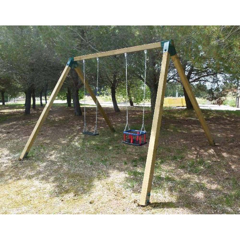 Misaladejuegos Columpio doble de madera Vega asientos mixtos Masgames Horeca MA500105B